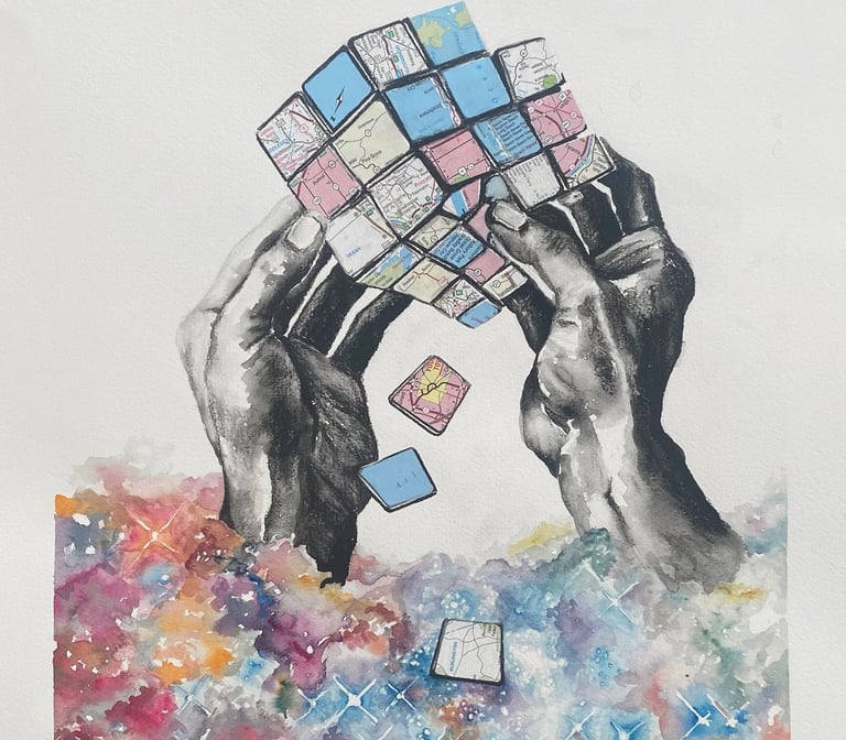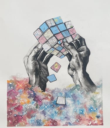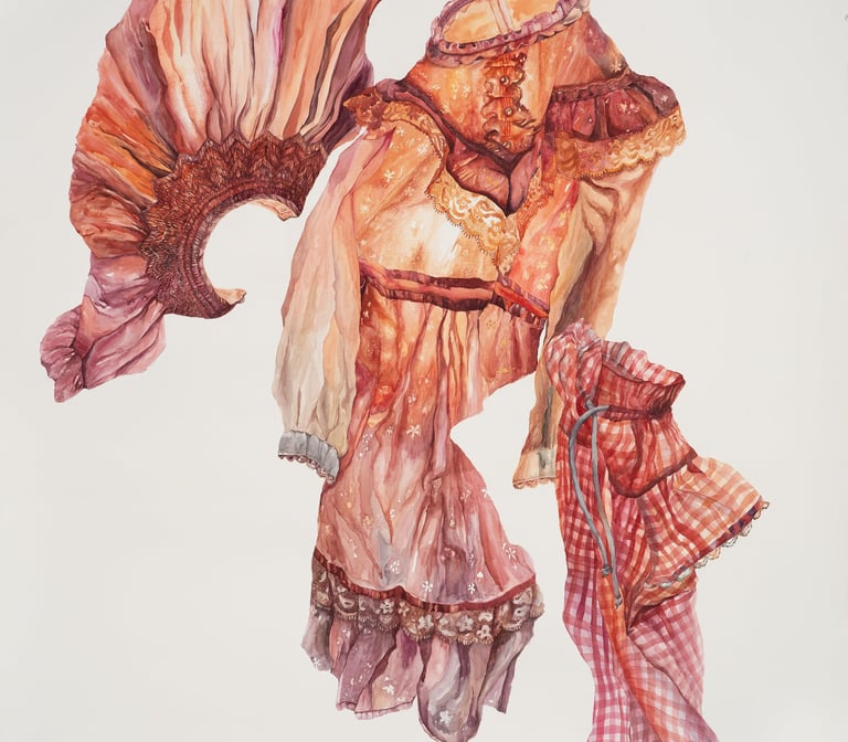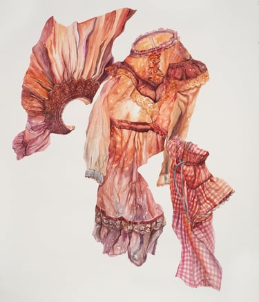 Through layered, highly rendered watercolor and deliberate mark-making, I examine hybridity, authorship, and belonging, creating images that feel intimate yet enduring.